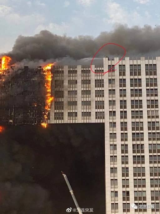 大连金普新区凯旋国际大厦火灾救援现场